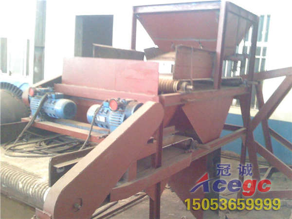 錳礦物屬弱磁性礦物〔比磁化系數X=10×10-6~600×10-6cm3/g〕,在磁場強度Ho=800~1600kA/m(10000~20000oe)的強磁場磁選機中可以得到回收,一般能提高錳品位4%~10%。